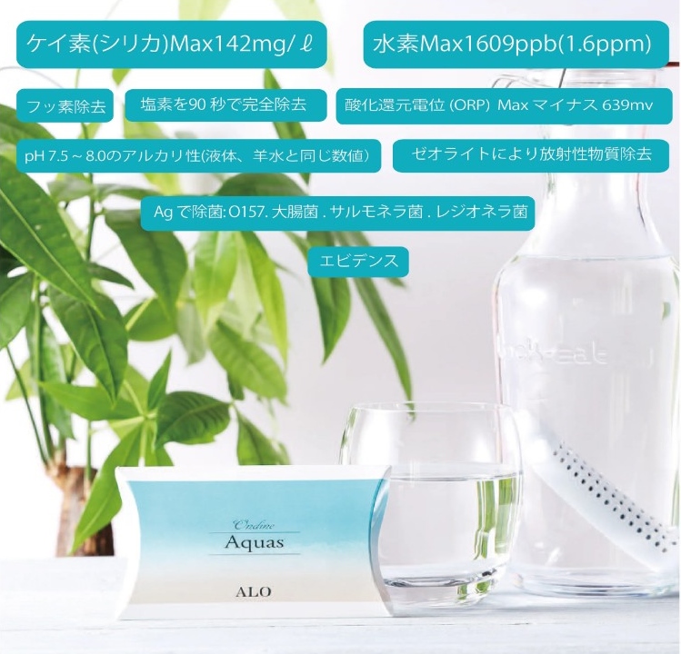 性能 :水道水への高濃度ケイ素・水素の生成、塩素・フッ素・放射性物質の除去、除菌など